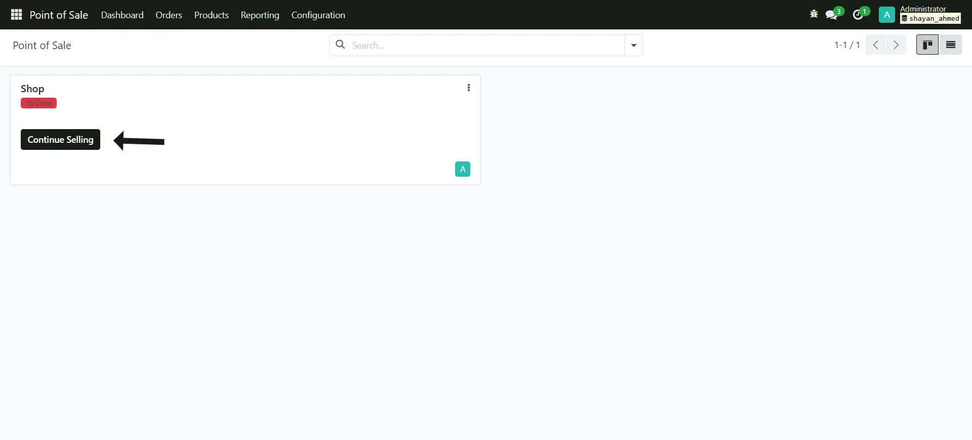 6. Click on the button to Start the Point of Sale (PoS) Session