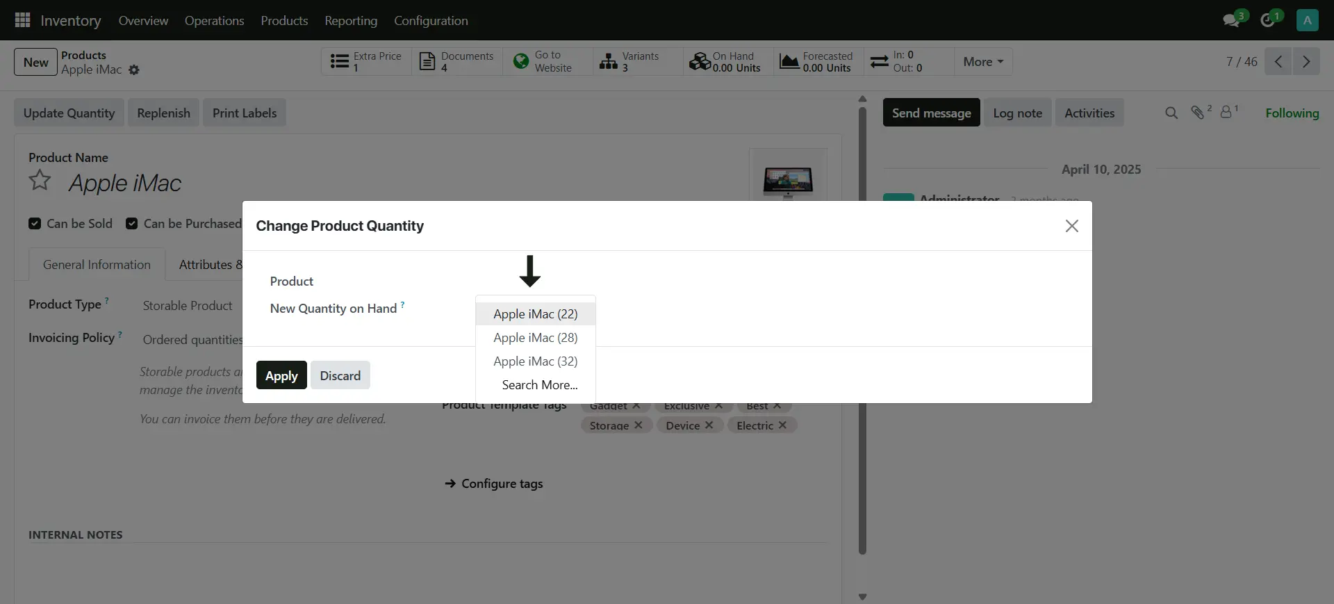 9. To add a stock of your product, go to Inventory > Products > Select the Product > On Hand
