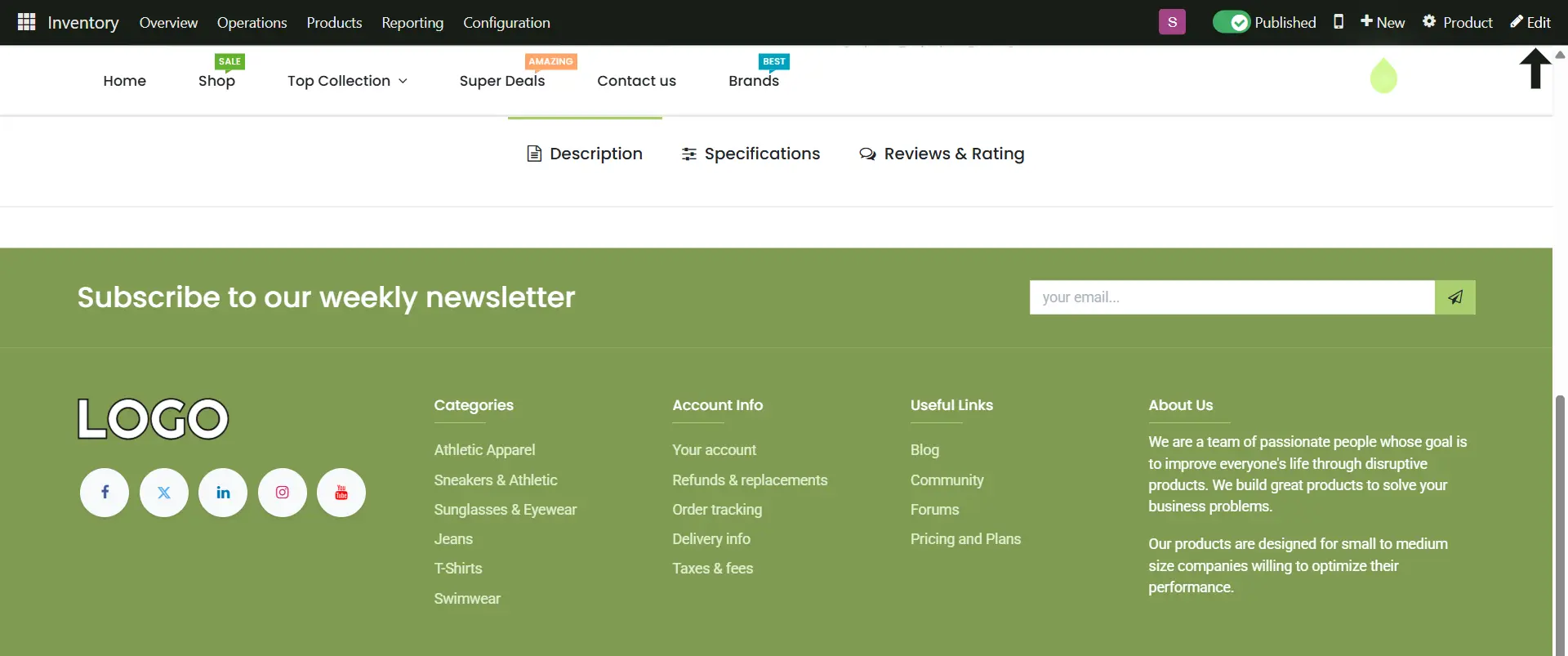 5. The Variant we add is link with the Brands, which is the features of a dedicated page for Brands. Website > Brands